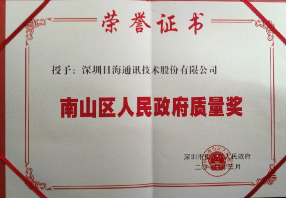 5月22日上午,2014年南山区政府质量表彰大会在区委顺利举行,日海智能等仅四家单位荣获“南山区人民政府质量奖”,公司总裁袁总上台接受表彰。深圳市市场管理监督局局长徐友军、南山区区长余新国、副区长王东等领导出席会议并讲话。南山区政府质量奖是深圳市质量奖的延伸,是政府借...
