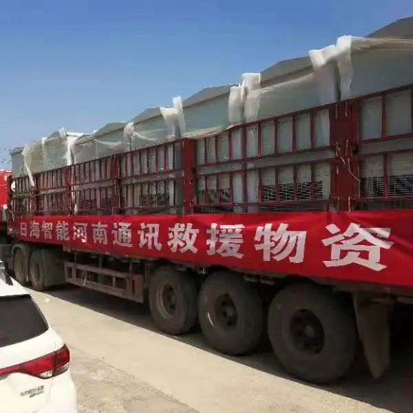 7 月 27 日上午发货至广州,由日海通服广东公司支援的应急抢修人员接到后直接开车赶赴郑州。为保障河南省基础通信设备正常运转,智能设备员工们又日以继夜、加班加点,在最短时间内完成了运营商客户需求,不计成本地全力支援河南省的灾情应急保障。
